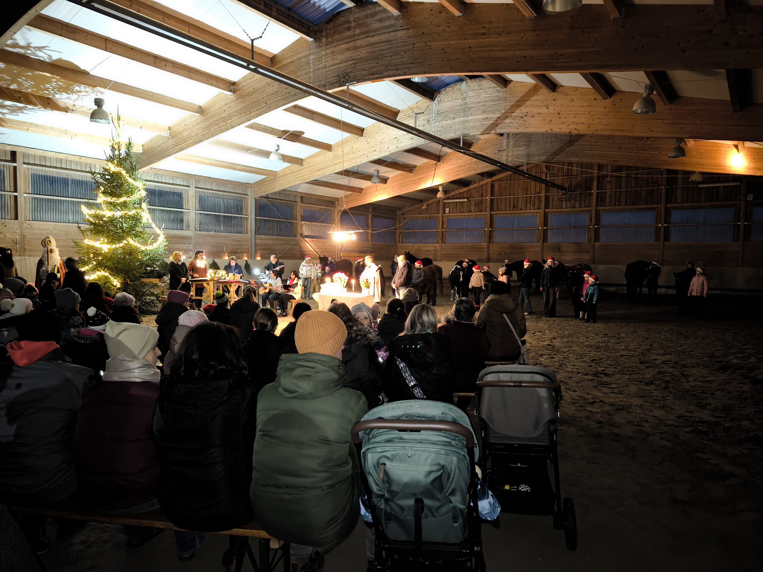 Am 30. November 2025 hat der Verein und die Pferdepension Hartmann eine Nikolausfeier für Groß und Klein in der weihnachtlich geschmückten Reithalle veranstaltet. Nach musikalischen Einlagen durch die Musikgruppe „Saitenhieb“ folgt die Segnung der Pferde durch den Pfarrer Bäuml mit geweihtem Brot. Zum Abschluss verteilt der Nikolaus großzügig kleine Geschenke an die vielen Kinder. Für die Erwachsene gibt es heiße Getränke zum Aufwärmen und warme Speisen zur Stärkung.